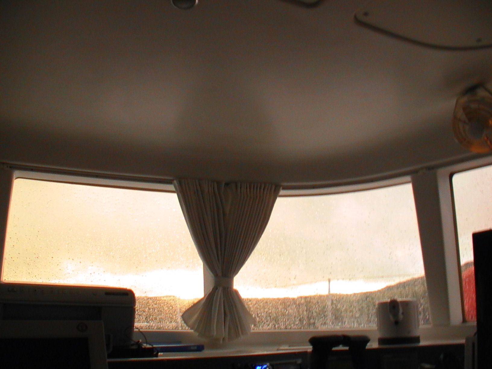Soon we were dropping the mooring ball and heading for Yacht Haven. On the way Marie and I packed then sat up on the bridge in a misty rain for the last time. After docking, Suzy showed up to take us to the airport and the long trip home.